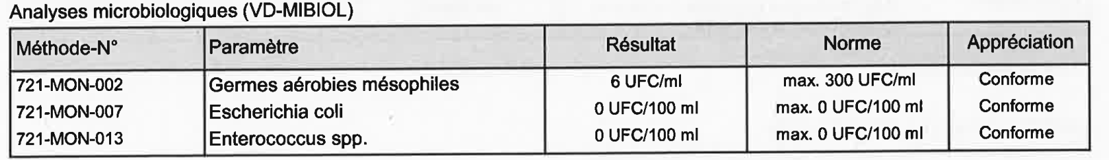 Analyses microbiologiques et chimiques no 12476-2 par EPUDEHL - échantillon prélevé le 30 juin 2025