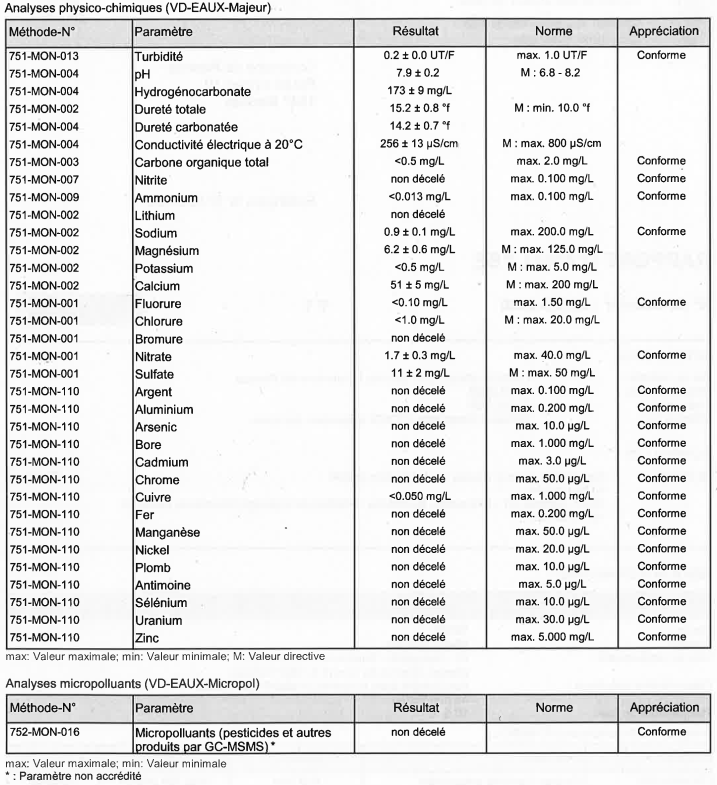 Conformément à l'Ordonnance fédérale sur les denrées alimentaires, nous vous informons sur la qualité de l'eau distribuées sur le territoire communal basé sur les analyses du SCAV effectuées plusieurs fois par année sur le territoire de la commune de Rennaz.